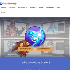 Tópicos: Ideo Tutorials, The Pro Version, Plug-ins, (click Here), e Buy Spriter.