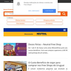 O site Comprasnafronteira está em 2.638.846º no ranking do Brasil. 'Compras na Fronteira - Free Shops.'
