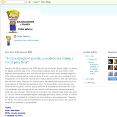 O site Felipevalenca está em 2.686.442º no ranking do Brasil. 'Em pensamentos e imagens - Felipe Valença.'