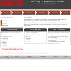 Tópicos: Kohoutek, Empresa, Servços, Estamparia, Repuxação, e Produtos.